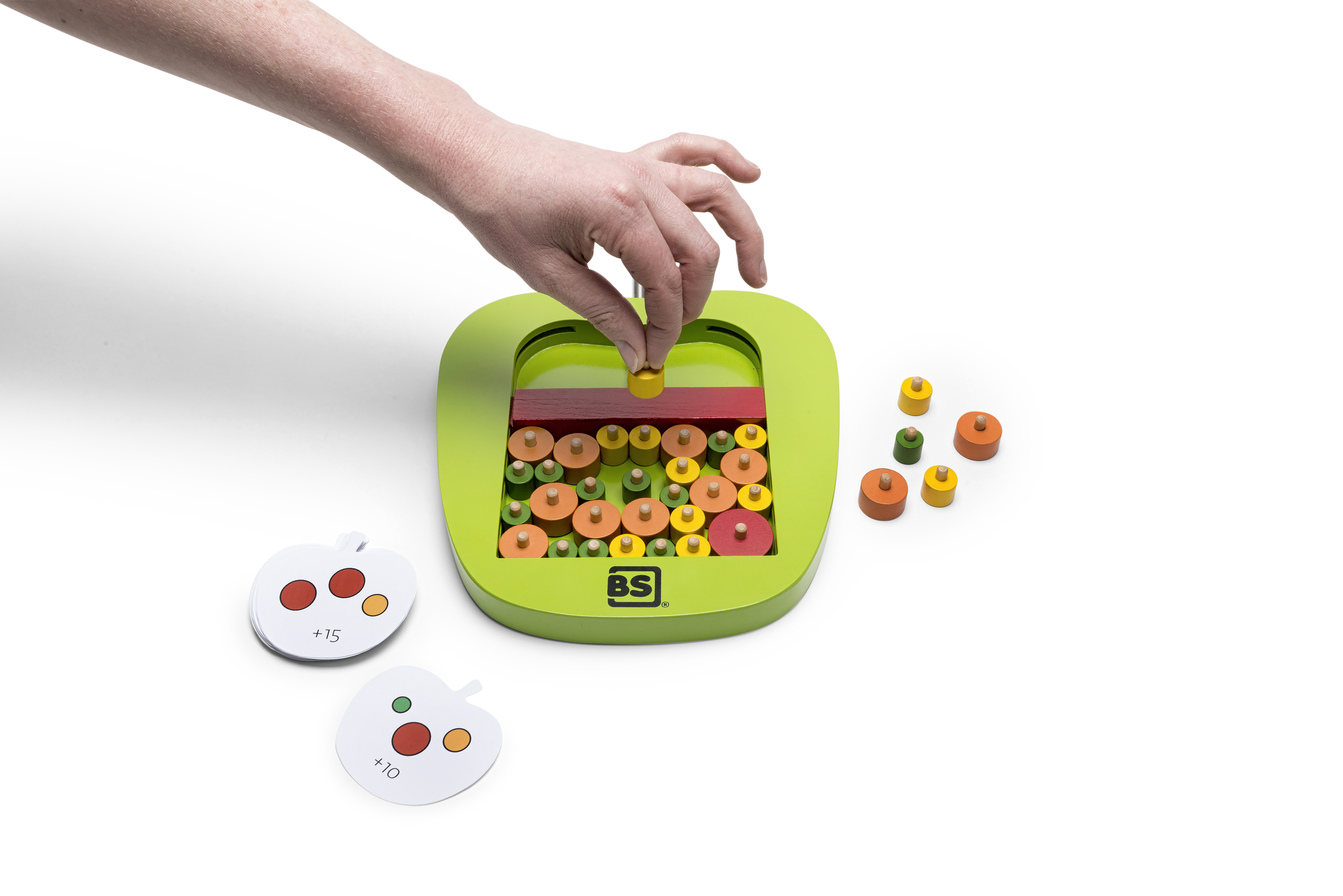 Beim Versuch die kleinen Äpfel Stück für Stück aus dem großen zu pflücken, soll der rote Balken möglichst an seinem Platz bleiben. Die Spielkarten bringen Extrapunkte durch Geheimaufgaben. Material Holz, Packmaß 28 x 28 x 7 cm, Für mindestens zwei Spielende ab 6 Jahren.
