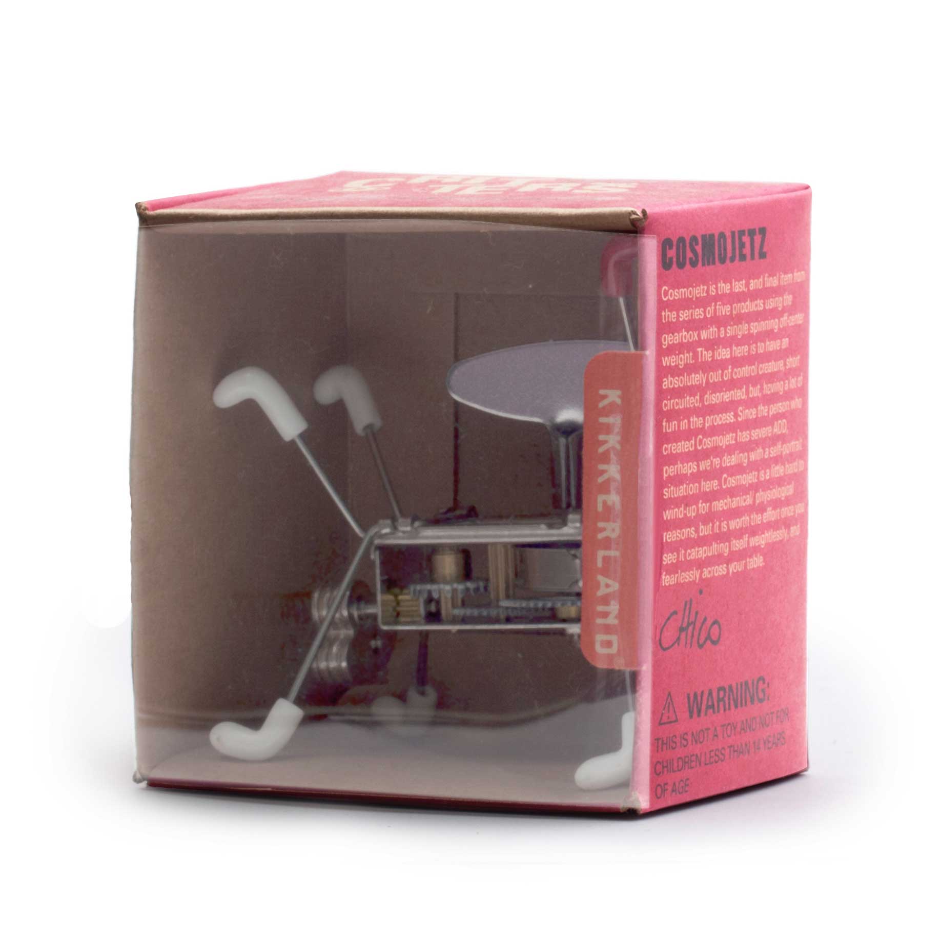Cosmojetz ist ein Vibrobot, ein kleiner Lauf-Roboter der von einem mechanischen Federwerk angetrieben wird. Dieses setzt das Objekt in Schwingungen, so dass es auf seinen federnden Drahtbeinen anfängt zu laufen beziehungsweise zu tanzen. Etwa 8 cm hoch