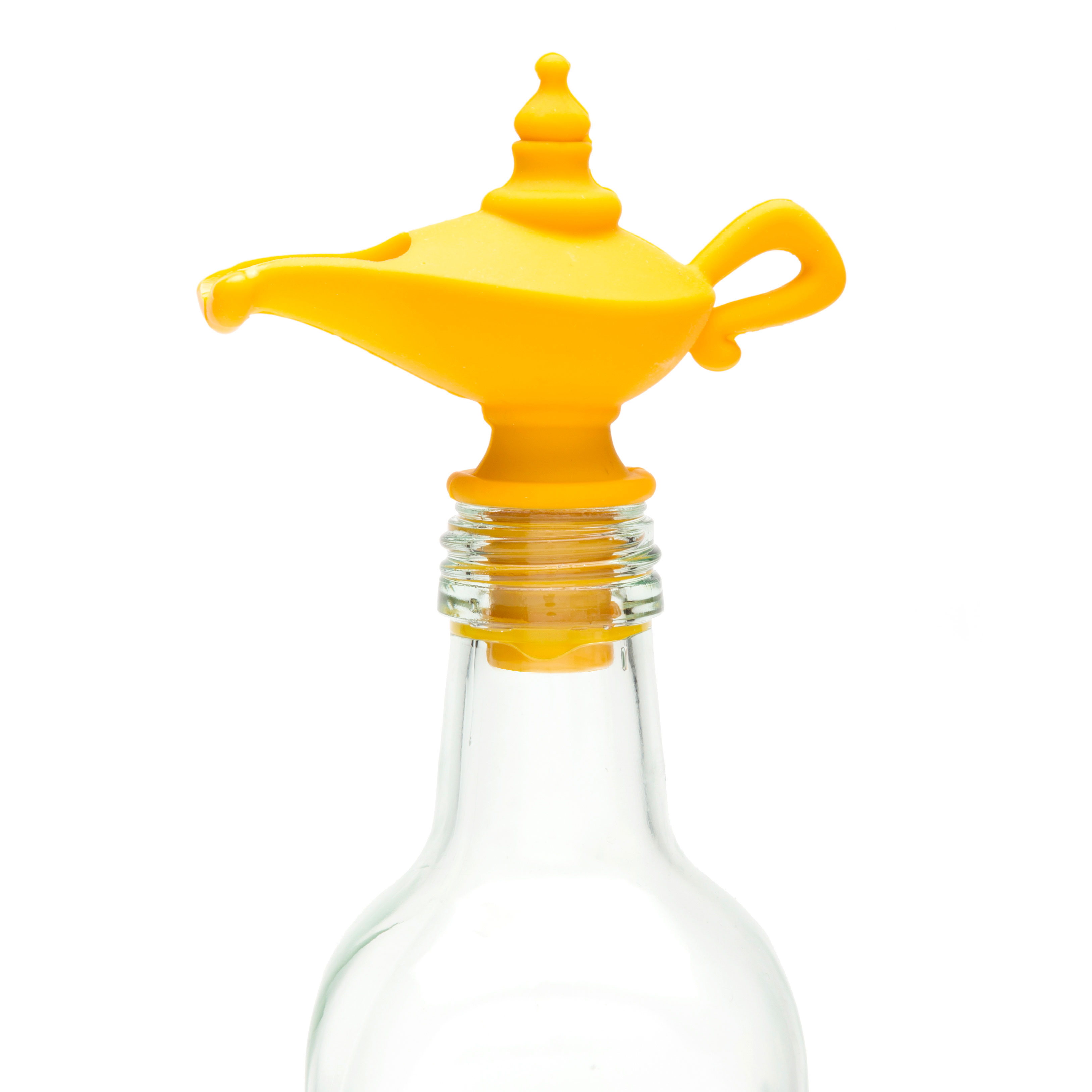 Aladdin hätte seine Freude daran: Flaschenverschluss mit Ausgießer, praktisch und nett anzusehen. Material Silikon, Packmaße 11 x 5 x 10 cm.