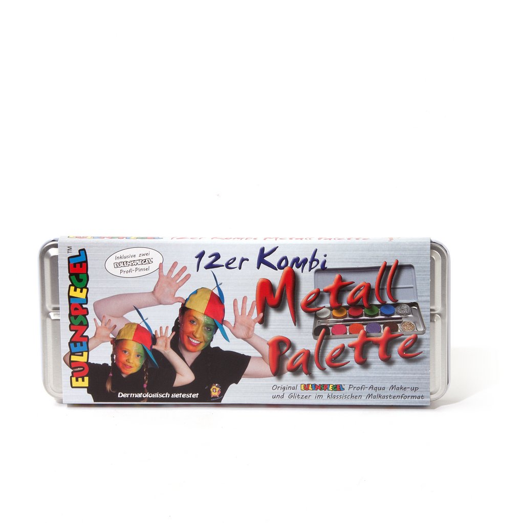 Die Kombi Metall Paletten sind eine praktische Zusammenstellung der wichtigsten Profi-Aqua-Farben Farben plus Glitzer im klassischen Malkastenformat (zum Nachfüllen geeignet, im Metalletui). Inhalt 2 Pinsel, 10 x 5 g Profi-Aqua Make-up und 2 x 2 g Glitter.