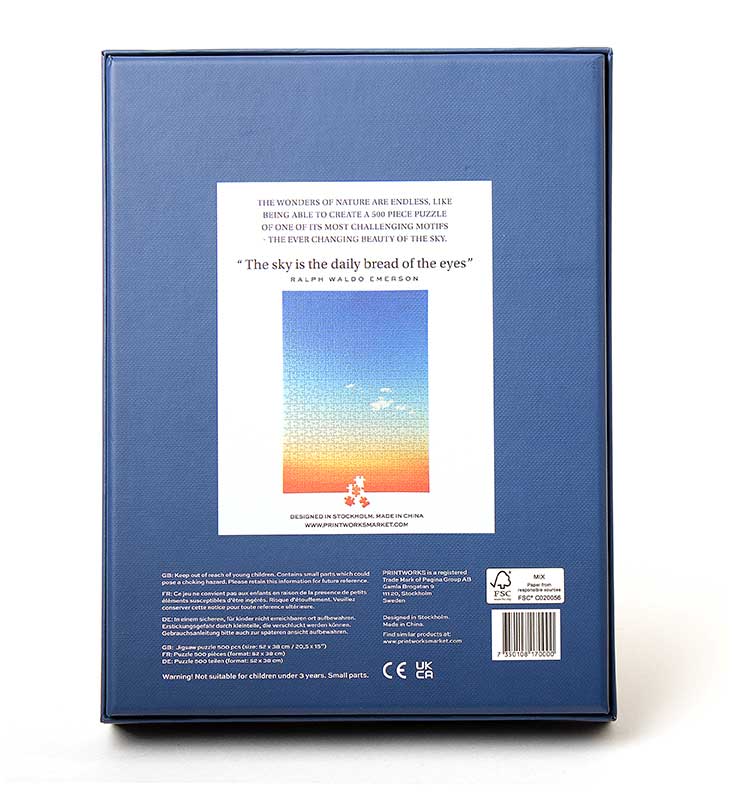 Ein 500-teiliges Puzzle mit einem der herausforderndsten Motive der Natur - die sich ständig verändernden Schönheit des Himmels. Hier als Abenddämmerung.